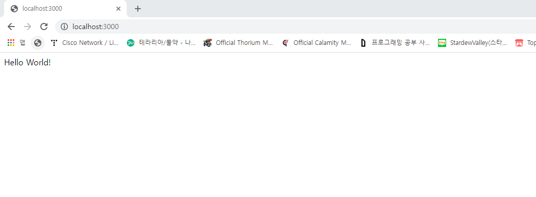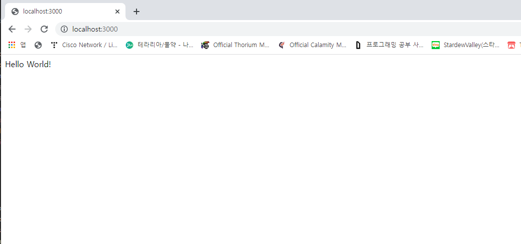 코드를 작성하고 localhost:3000으로 접속하면 다음과 같이 Hello World! 가 출력된 것을 확인할 수 있습니다. app.controller.ts의 @Controller() 데코레이터에는 저희가 어떠한 경로도 지정해주지 않았는데, 이 경우 해당 컨트롤러가 디폴트 경로가 되는 것을 알 수 있습니다. 그래서 Hello World! 가 출력된 것이죠.