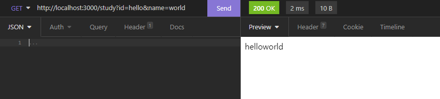 그렇다면 방금 작성한 hello Tristy! 를 보기 위해서는 어떻게 해야 할까요? StudyController의 경우에는 @Controller() 데코레이터의 경로를 'study'로 작성했으니 당연히 study로 접근해야겠죠.